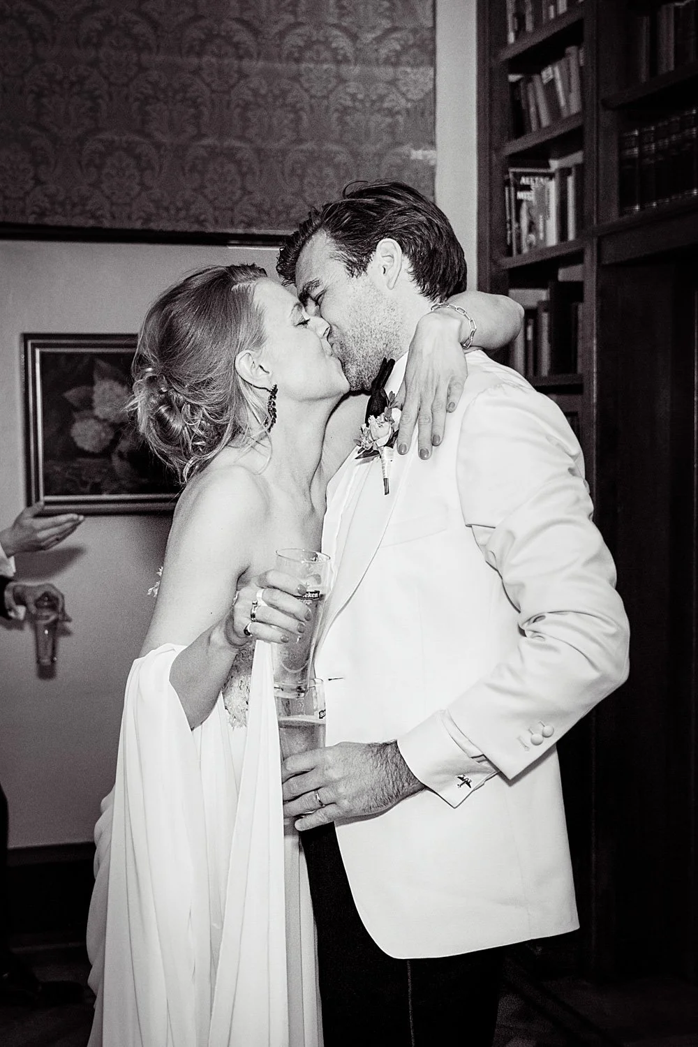 De ceremonie vond plaats in een van de klassieke zalen op de begane grond van Kasteel Wittenburg. De ruimte was rijkelijk aangekleed met bloemstukken, wat het geheel een warme en verfijnde uitstraling gaf. Naast de ambtenaar spraken verschillende dierbaren, en het bruidspaar richtte zich met eigen geloften tot elkaar. Een ceremonie die niet alleen formeel voelde, maar vooral persoonlijk en oprecht.